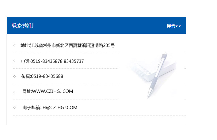 地址:常州市新北區友邦商務大廈1幢16、17層  電話:0519-85101652  傳真:0519-85112595  郵編:213022  網址:www_cz-jiayue_cn.aoda-carbide.com  郵箱:xiajifengaa@163.com
